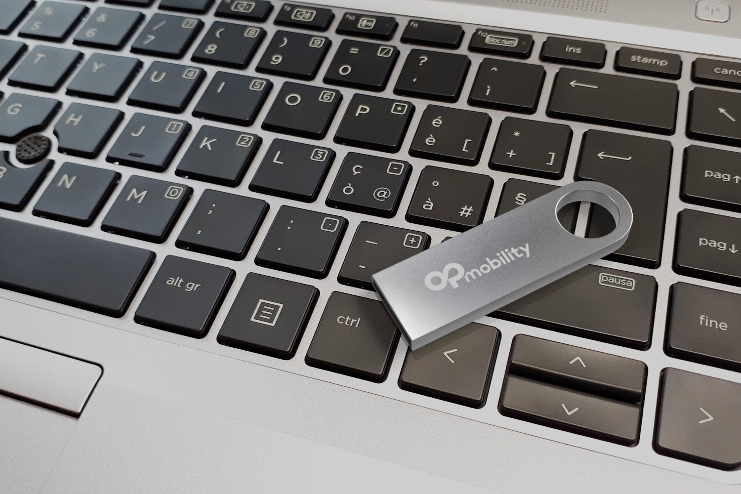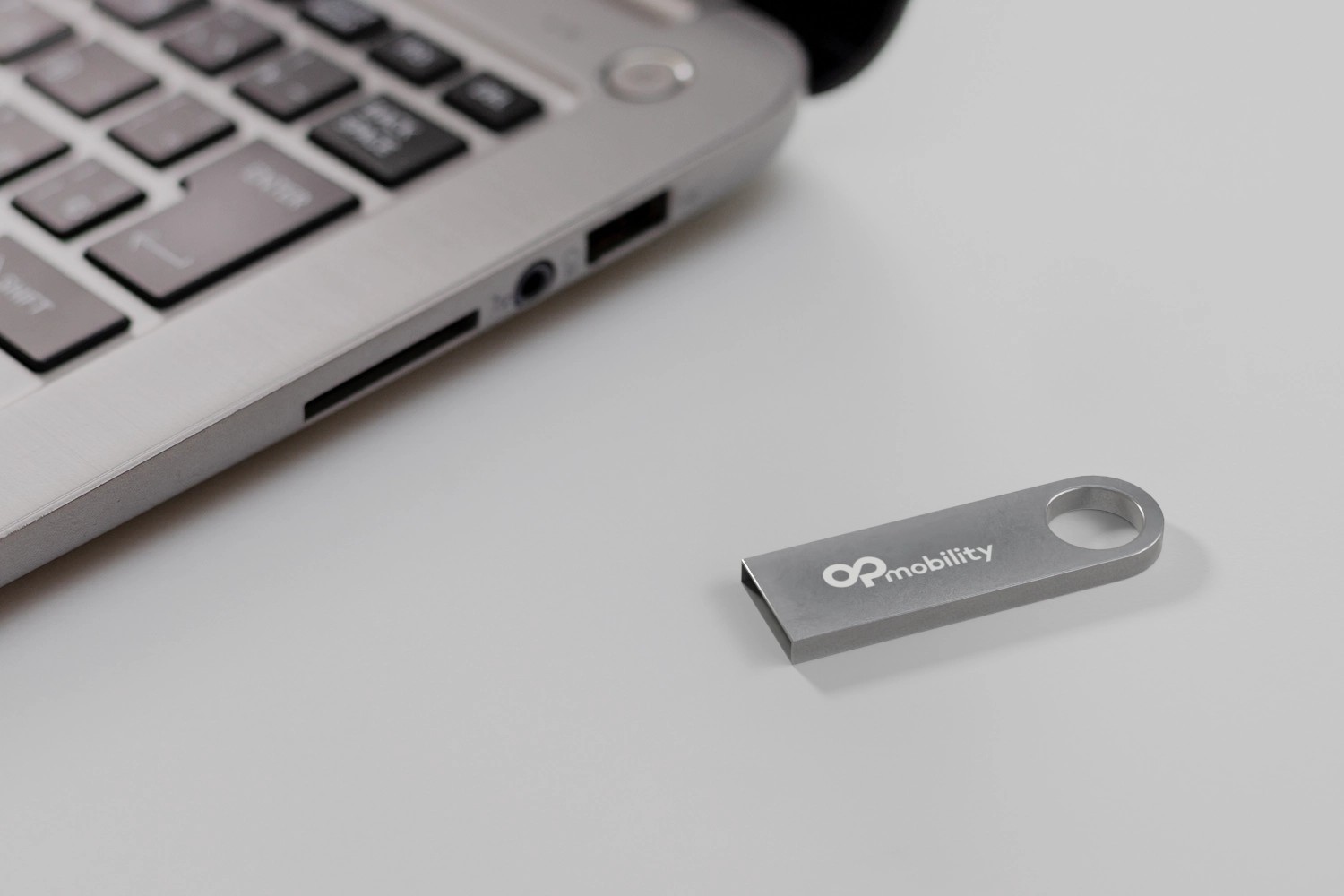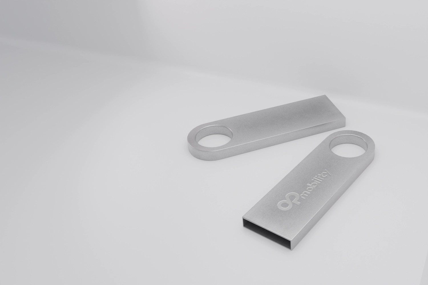 Dank des Aluminiumgehäuses ist der USB-Stick robust und leicht. Der USB-Stick lässt sich an einen Schlüsselanhänger befestigen (nicht im Lieferumfang enthalten). Material: Aluminium.