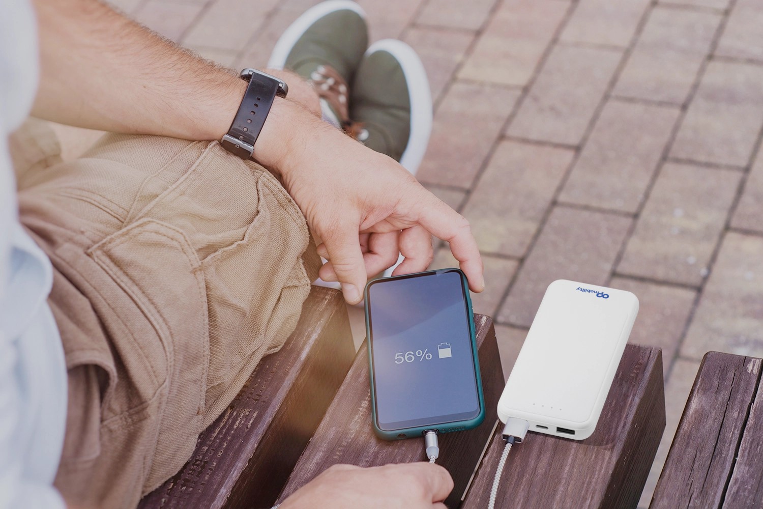 Die 10.000 mAh Powerbank aus recyceltem Kunststoff vereint Stil und Komfort in einem kompakten Design. Mit zwei integrierten Kabeln, einem Typ-C und einem Lightning-/Micro-USB-Kombikabel sowie zwei USB-A Ausgängen und einem Typ-C Ein-/Ausgang bietet es vielseitige Lademöglichkeiten. Eine LED-Anzeige zeigt den Ladestatus, eine zuverlässige Lösung für unterwegs.